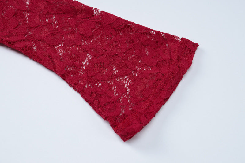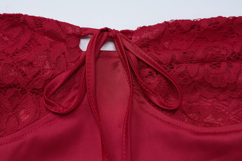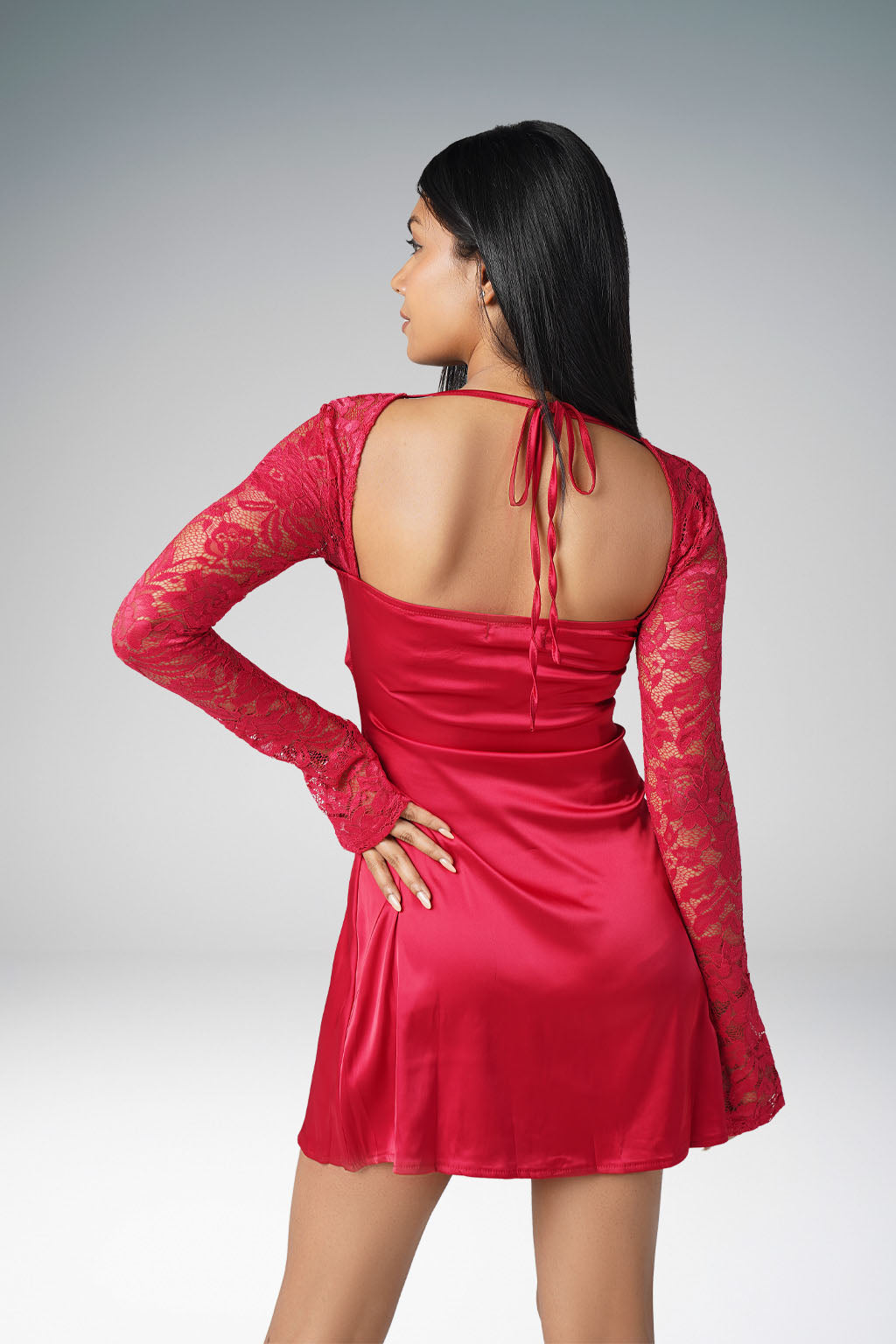 Red Satin Lace sleeve mini dress