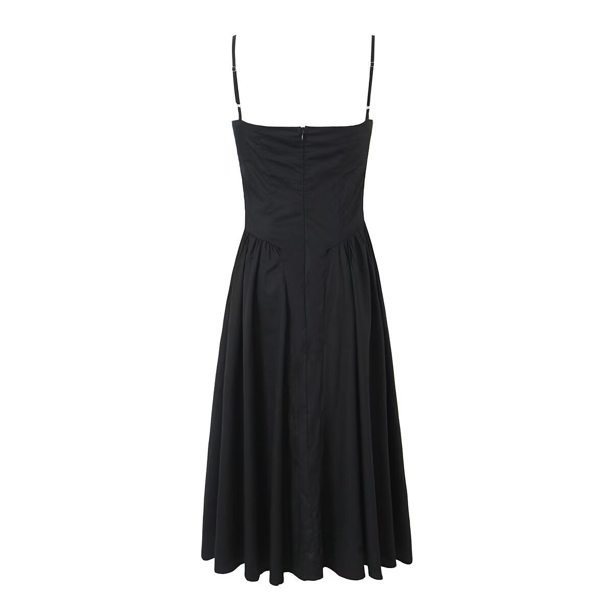Ladies Dress Summer Clothes Women Dress Square Collar Fold Strap Midi Dress Sleeveless
