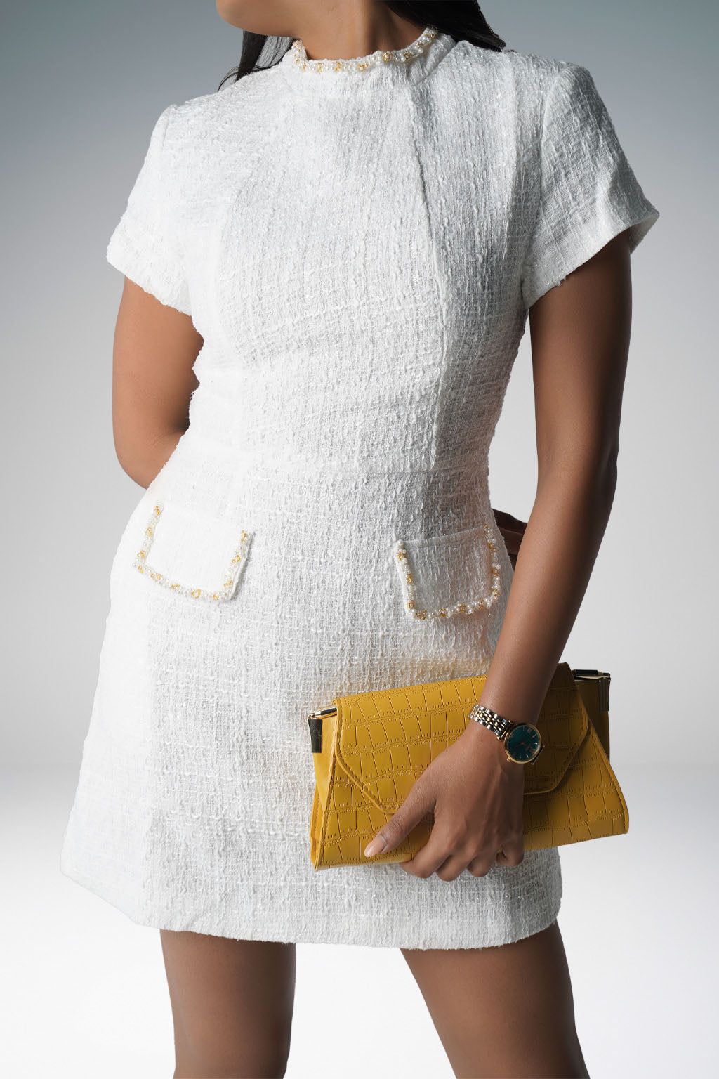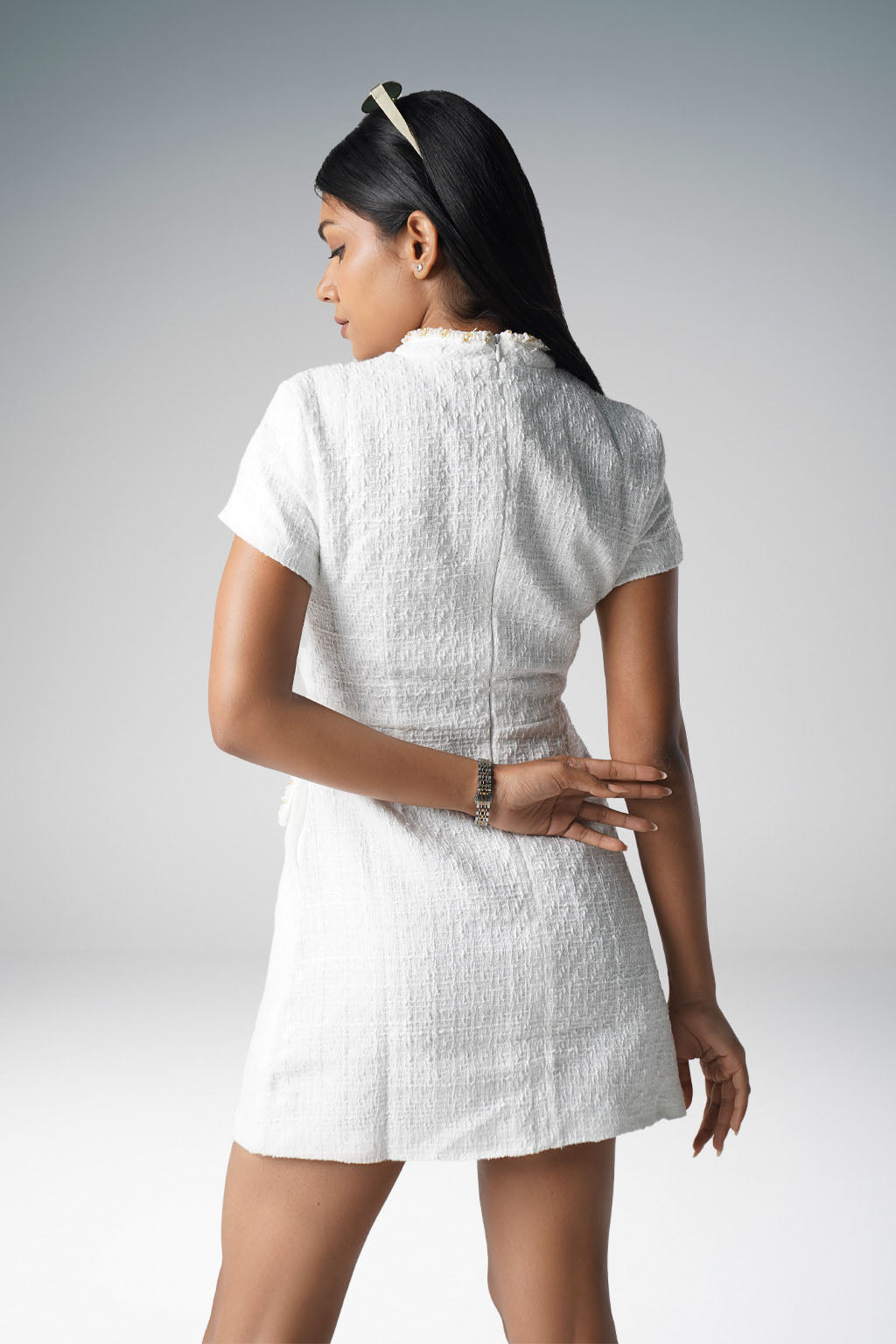 White tweed mini dress